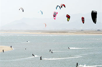 다대포는 여는 바다와는 다르게 이색적인 장면을 볼 수 있다. 바다 한 가운데 형형색색의 패러글라이딩과 같은 대형 연들을 볼 수 있는데 이를 카이트보딩(kite boarding) 또는 카이트 서핑(Kite surfing)이라고 부른다. 바람과 연을 이용하여 물위를 달리며 묘기를 부리고, 공중 점핑까지 고난도 기술을 펼치는 신종 익스트림 해양레저스포츠로 다대포는 카이트보딩을 하기에 국내 어느 지역보다 우수한 조건을 갖추고 있어 많은 동호인과 선수들이 다대포를 찾고 있다.